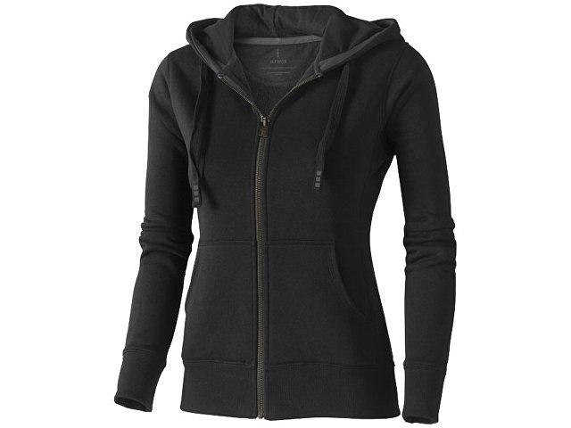 Женский свитер Arora с капюшоном и застежкой-молнией на всю длину. резинка 2х2 на боковых вставках, поясе и манжетах. Карман кенгуру. Мужская и женская модели с завязками на капюшоне. Подкладка внутри капюшона. Подкладка на полумесяце. Атласная лента внутри горловины. Контрастный цвет внутри капюшона. Принт лого сзади в тон изделия. Серебристые люверсы с лого. Трикотаж: 80% хлопок и 20% полиэстер, чесаная внутренняя сторона. 300 г/м².