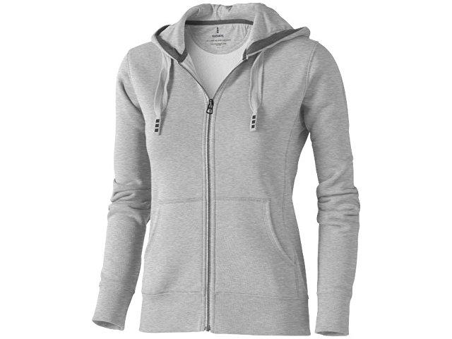 Женский свитер Arora с капюшоном и застежкой-молнией на всю длину. Стандартный покрой. Резинка 2х2 на боковых вставках, поясе и манжетах. Карман кенгуру. Мужская и женская модели с завязками на капюшоне. Подкладка внутри капюшона. Атласная лента внутри горловины. Принт лого сзади в тон изделия. Серебристые люверсы с лого. Ворсистый внутри для мягкости, тепла и комфорта. Трикотаж: 82% хлопок, 10% вискоза и 8% полиэстер, чесаная внутренняя сторона. 300 г/м².