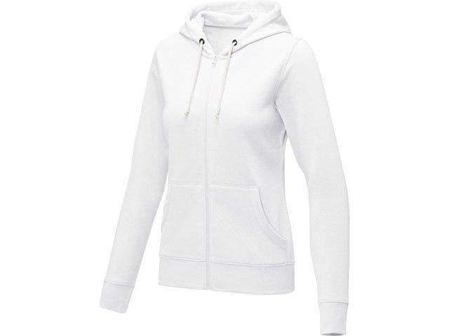Женская толстовка на молнии Theron. Основная этикетка, которую можно оторвать или отрезать, без неудобных пришитых ярлыков. Завязки на капюшоне. Расположенная по центру молния. Карман «кенгуру». С подшивкой из гладкого трикотажа в рубчик. С манжетами из гладкого трикотажа в рубчик. Внутренняя сторона покрыта ворсом. Тесьма из основного материала по внутренней стороне горловины. Придающие форму швы и зауженная талия для ровного прилегания. Трикотаж 50% Хлопок, 50% Полиэстер, 240 g/m2.