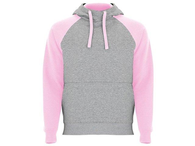 Худи с контрастным рукавом реглан. Капюшон с запахом, с контрастной подкладкой. На полочке карман кенгуру. Манжеты рукавов и низ изделия из риба 1х1.
