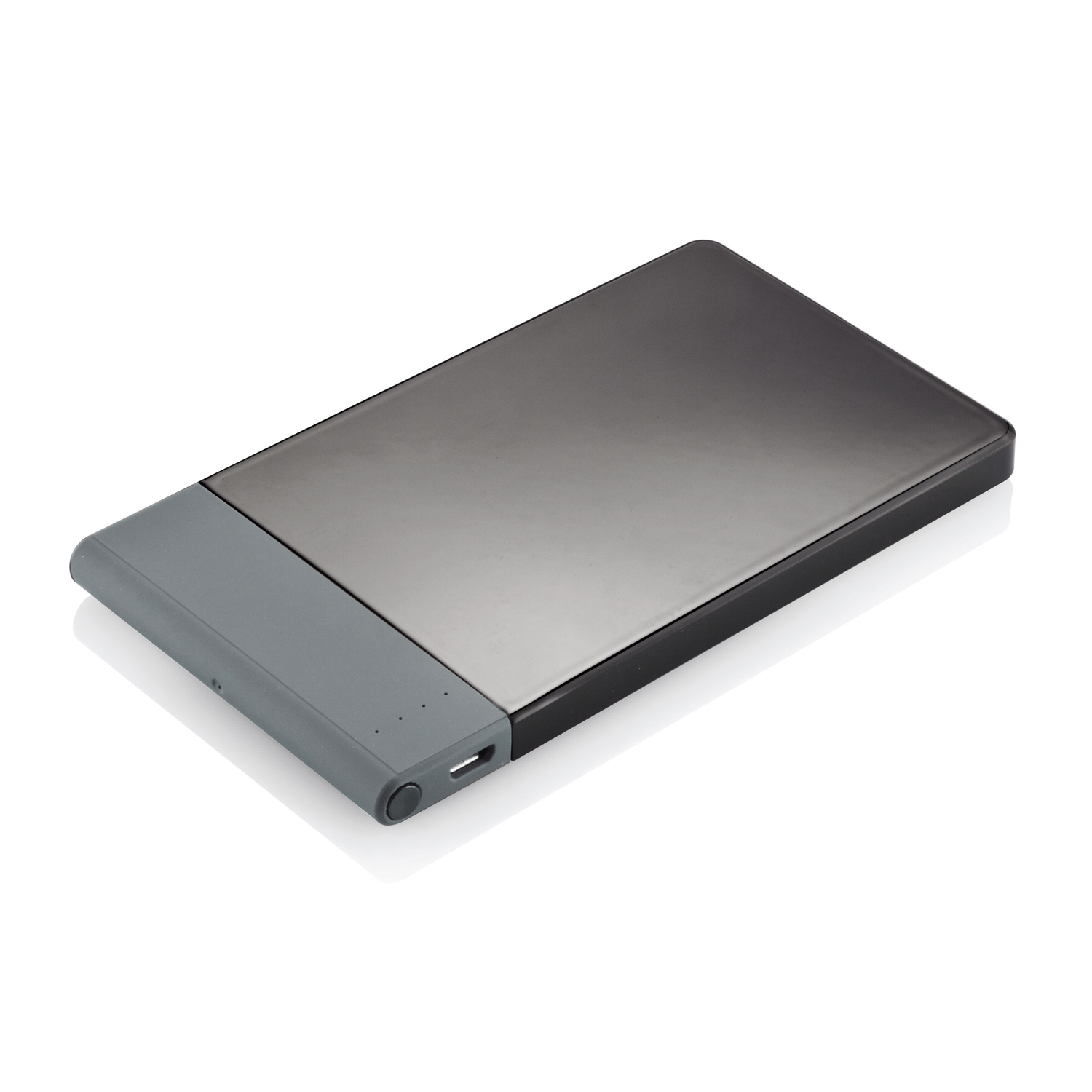 Ультратонкий внешний аккумулятор на 4600 mAh с высокопроизводительной литий-полимерной батареей. Оборудован кнопкой включения / выключения и индикатором уровня зарядки аккумулятора. Выходное напряжение: 5В/2,1А, входное: 5В/1А. Поставляется в прозрачной подарочной упаковке.