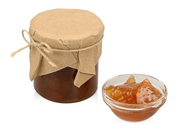 Банка варенья обернута крафт-бумагой, на которую возможно сделать нанесение корпоративного логотипа.