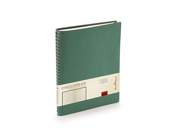 Недатированные деловой ежедневник «Tintoretto». Реальный шов по периметру в цвет материала Гибкий мягкий материал обложки прекрасно подходит для нанесения тиснения. Ежедневники выпускаются в формате В5, его размеры составляют 185 х 230 мм. Блок – 136 листов соединен полускрытым металлическим гребнем. Для блока используется высококачественная бежевая бумага, обладающая плотностью 70 грамм. В начале ежедневника расположены страницы со справочным материалом.