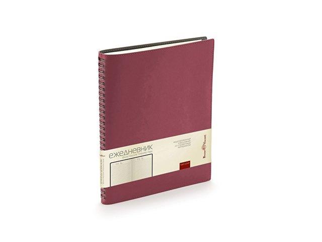Недатированные деловой ежедневник «Tintoretto». Реальный шов по периметру в цвет материала Гибкий мягкий материал обложки прекрасно подходит для нанесения тиснения. Ежедневники выпускаются в формате В5, его размеры составляют 185 х 230 мм. Блок – 136 листов соединен полускрытым металлическим гребнем. Для блока используется высококачественная бежевая бумага, обладающая плотностью 70 грамм. В начале ежедневника расположены страницы со справочным материалом.