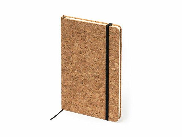 Блокнот формата А5 в твердой обложке из натуральной пробки на резинке с закладкой. 80 листов.