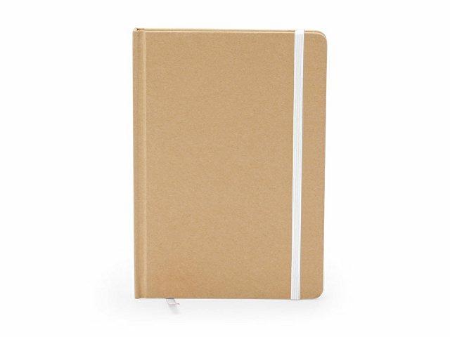 Блокнот формата А5. Твердая обложка из переработанного картона. Закладка и цветная резинка. 100 простых листов.