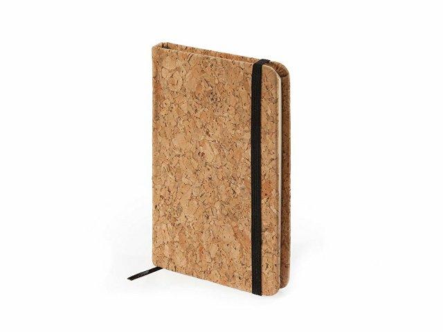 Блокнот формата А6 в твердой обложке из натуральной пробки. Закладка и резинка. 80 простых листов.