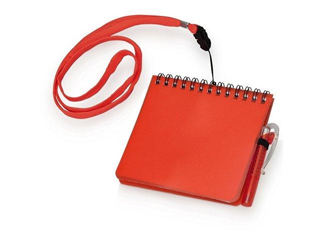 Яркий блокнот с шариковой ручкой можно носить на шее благодаря специальному ремешку (45 см). Отличный промо-сувенир, на обложку которого можно нанести логотип.