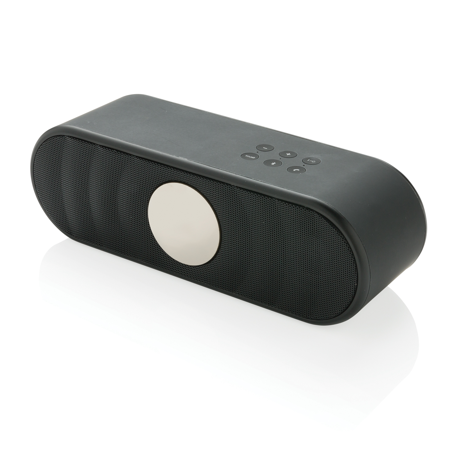 Стильная Bluetooth-колонка Flow с резиновым напылением порадует не только слух, но и взгляд. На стильном корпусе расположено 6 кнопок: включение / выключение, регулировка громкости, прием звонков и кнопка выбора различных режимов настройки частот. На нижней панели предусмотрены две полосы для хорошего сцепления с поверхностью и отличного качества звука. Встроенного аккумулятора емкостью 1200 мАч хватает на 10 часов работы. На колонке также есть стандартный аудио-разъем jack для подключения к телефону или компьютеру.