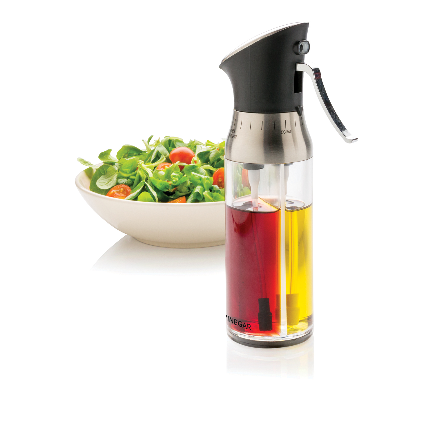 Бутылка для масла и уксуса 2 в 1 поможет заправить салат, подобрав идеальную дозировку всего за пару секунд! Медленно нажмите на дозатор, и заправка польется как из обычной бутылки, но если нажать быстро, вы сможете слегка “сбрызнуть” свой кулинарный шедевр смесью масла, уксуса или других добавок.
