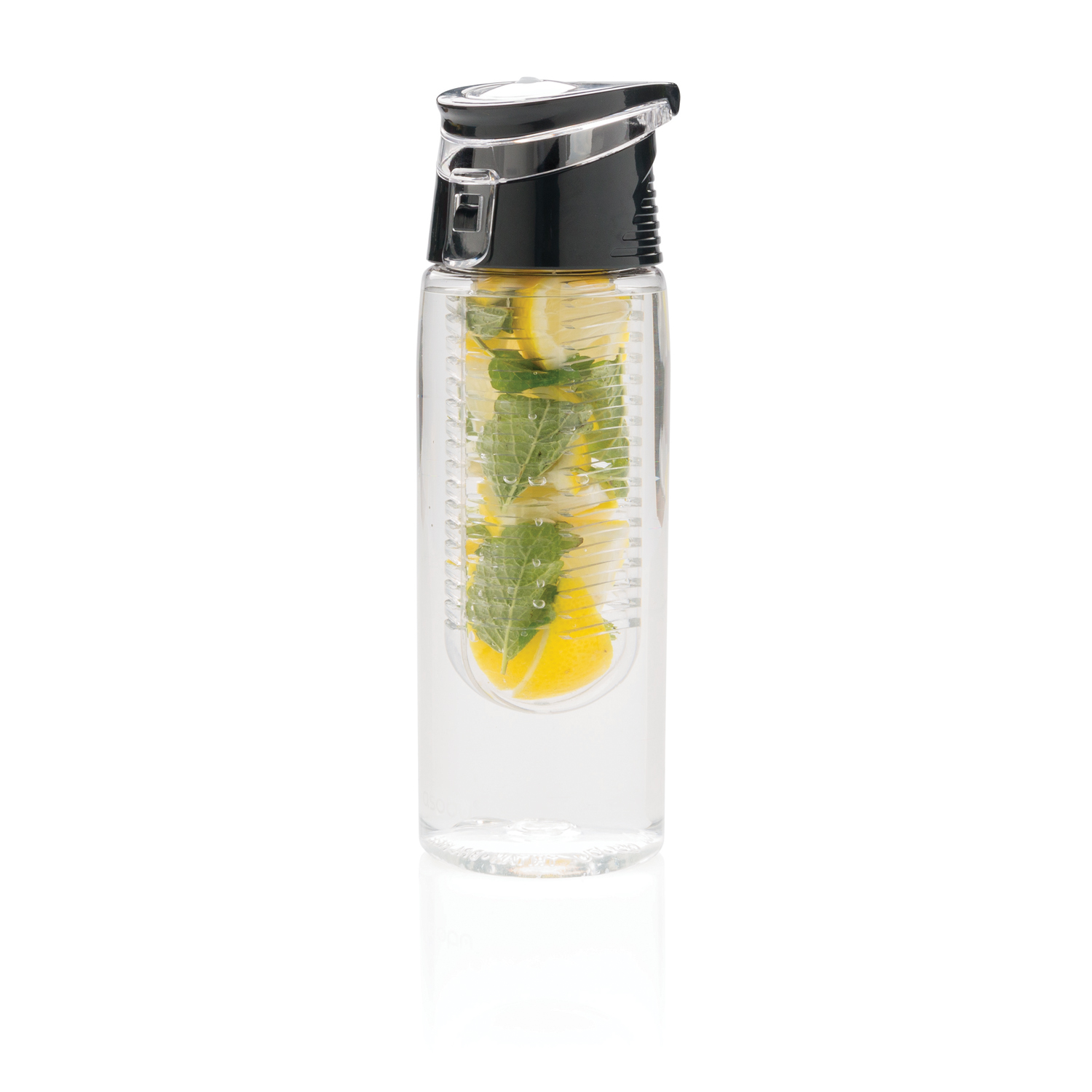 Стильная бутылка для воды Lockable с контейнером отлично подходит для приготовления фруктовых или травяных напитков. Корпус изготовлен из износостойкого и экологичного материала Tritan, а крышка выполнена из ABS-пластика. Защита от проливания. Объем – 700 мл.