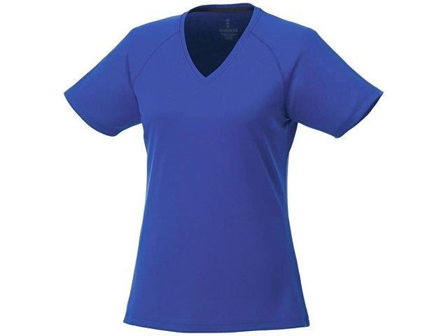Модная женская футболка Amery с коротким рукавом и V-образным вырезом. Воротник из ткани изделия.V-образная горловина. Рукава реглан. Тонкий шов. Атласный кант по линии горловины. Отражающие детали. Комфортный ярлык-трансфер на изделии. Сетчатый материал, 100% полиэстер с дышащей поверхностью и отделкой Cool Fit. 145 г/м².