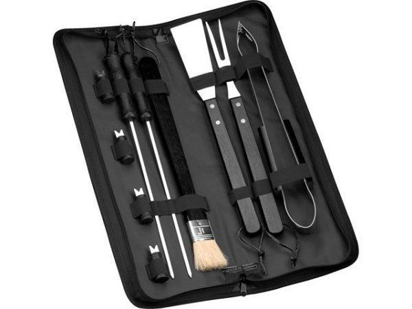 Набор для барбекю “Barabicu” из 10 предметов. Чехол с застежкой на молнии, передним открытым карманом и двумя ручками, включая лопатку, вилку, щипцы, 2 шампура, кухонную кисть и 4 держателя для кукурузы.