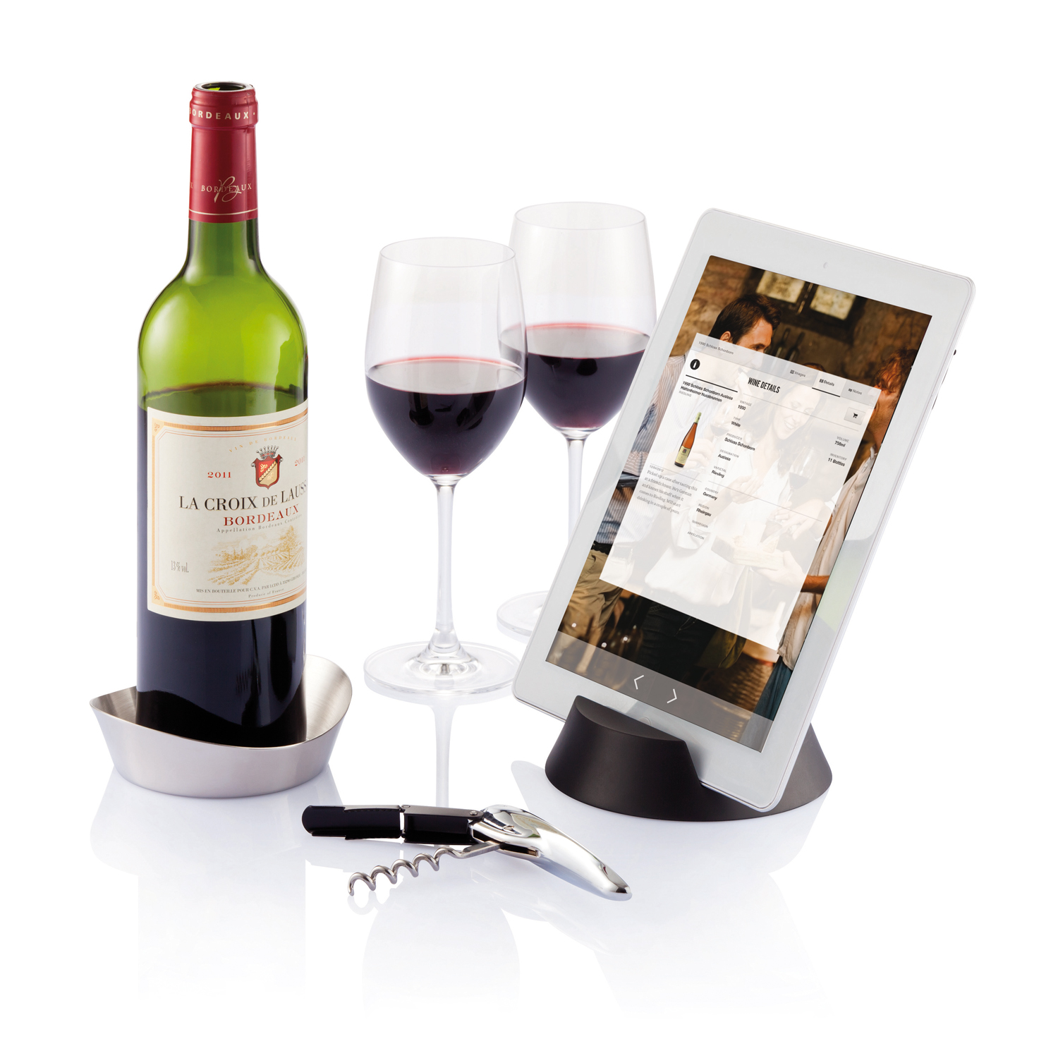 в себя: штопор для вина, поднос для бутылки вина и держатель