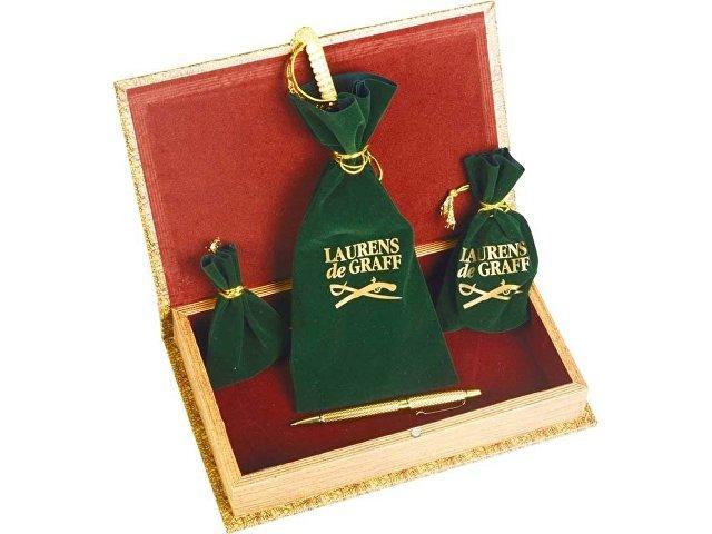 Оригинальный подарочный набор включает в себя следующие аксессуары: брелок-термометр, шариковую ручку, нож для конвертов и бумаг, песочные часы. Аксессуары упакованы в мягкие мешочки и подарочную коробку с изображением карты мира.