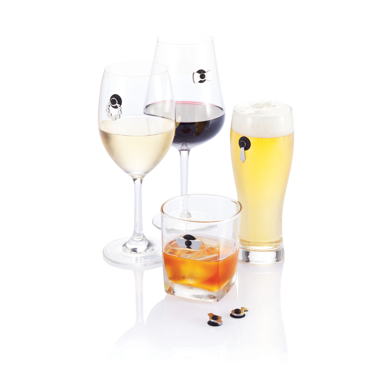 Набор маркеров для бокалов Cheers – это 6 маркеров из нержавеющей стали с различным дизайном. Отметив бокалы маркерами Cheers, вы можете быть уверены – гости не перепутают свои бокалы. В комплекте идет сумочка, в которой удобно хранить маркеры до следующей вечеринки или праздника. Зарегистрированный дизайн®.