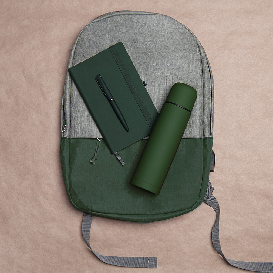 Набор подарочный HIKER: ежедневник, ручка, термос, рюкзак, зеленый