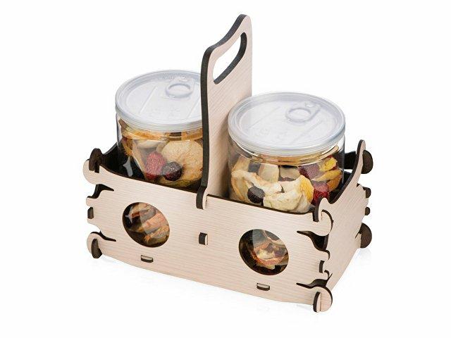 Мы красиво упаковали этот набор в корзинку-переноску из переработанной древесины, которую можно брендировать несколькими методами, и которая станет полезным, красивым и долговечным аксессуаром в доме. Чипсы упакованы в брендируемые наклейками пластиковые банки, которые можно использовать для хранения любых пищевых и непищевых предметов благодаря удобной форме и наличию плотно закрывающейся полиэтиленовой крышки.