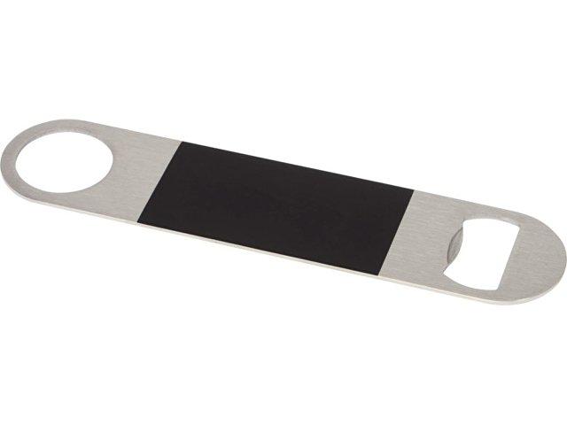 Открывалка для бутылок из нержавеющей стали с большой цветной областью в центре.