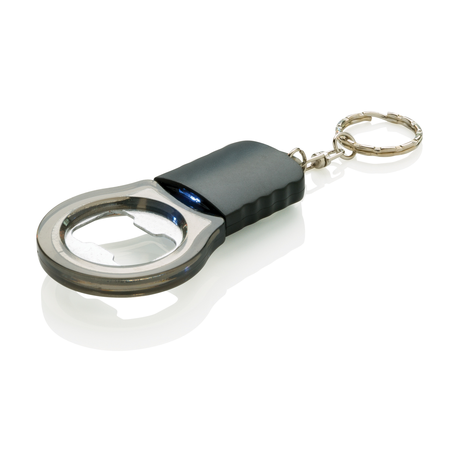Открывашка Bright idea для стеклянных бутылок со встроенным светодиодным светильником. Корпус из ABS-пластика с открывашкой из нержавеющей стали.