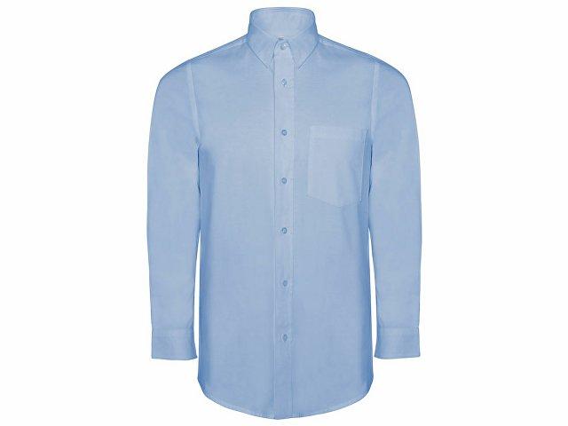 Мужская рубашка с длинным рукавом, накладной карман слева. Планка на пуговицах. Отложной воротник на стойке. Манжета регулируется по ширине с помощью 2-х пуговиц. Кокетка на спинке.