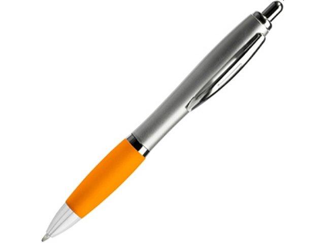 Шариковая ручка с серебристым корпусом из АБС-пластика и полупрозрачным мягким грипом