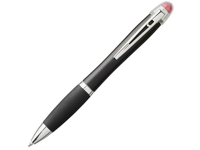 Светящаяся шариковая ручка Nash со светящимся черным корпусом и рукояткой. Шариковая ручка со святящимся матовым черным корпусом и твист механизмом, цветным стилусом, прорезиненной черной рукояткой и металлическим зажимом. Область для декорирования специально предназначена для лазерной гравировки. Логотип и/или название бренда светится тем же цветом, что и стилус Батарейки входят в комплект. АБС-пластик.