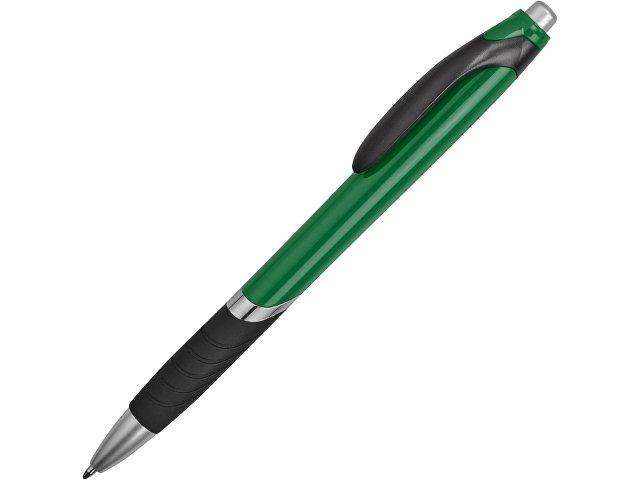 Шариковая ручка с кнопочным механизмом и резиновым держателем.