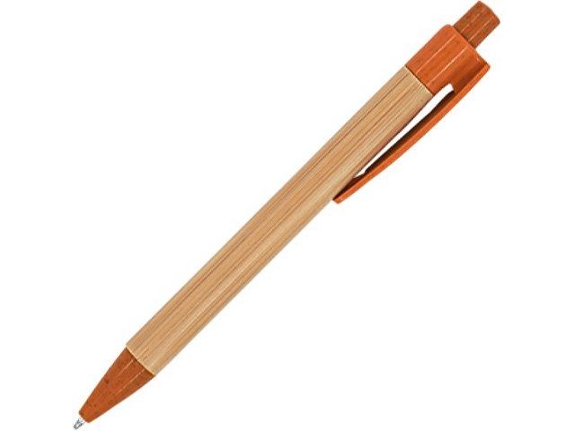 Шариковая ручка с бамбуковым корпусом. Наконечник, клипса и кнопка из пшеничного волокна / ABS. Синие чернила.