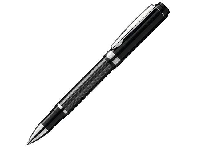 Шариковая ручка из карбонового волокна с поворотным механизмом, металлической фурнитурой с глянцевой хромированной отделкой.
