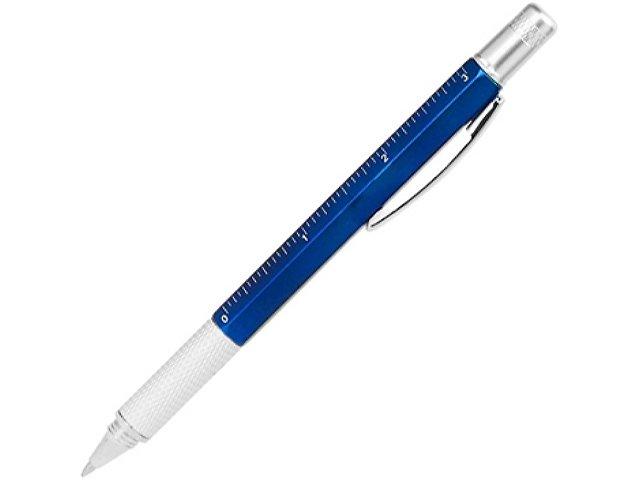 Многофункциональная ручка: уровень, сантиметровая и дюймовая линейка, плоская отвертка и звездообразная отвертка. Корпус доступен в различных цветах. Синие чернила.