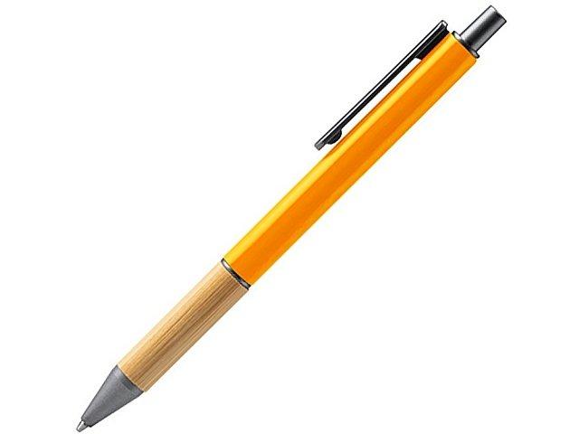 Металлическая шариковая ручка с матовым покрытием, бамбуковой вставкой и деталями темного цвета.