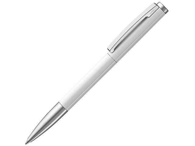 Металлическая шариковая ручка с поворотным механизмом и пружинным клипом. Поверхность серебристого матового цвета, фурнитура глянцевая, черная матовая или белая глянцевая с матовыми деталями.
