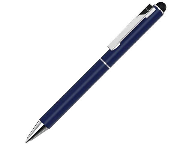 Металлическая шариковая ручка с матовой поверхностью, металлическим клипом, металлическим наконечником и кнопкой с глянцевой серебристой отделкой, прорезиненным ободом для сенсорного регулирования.