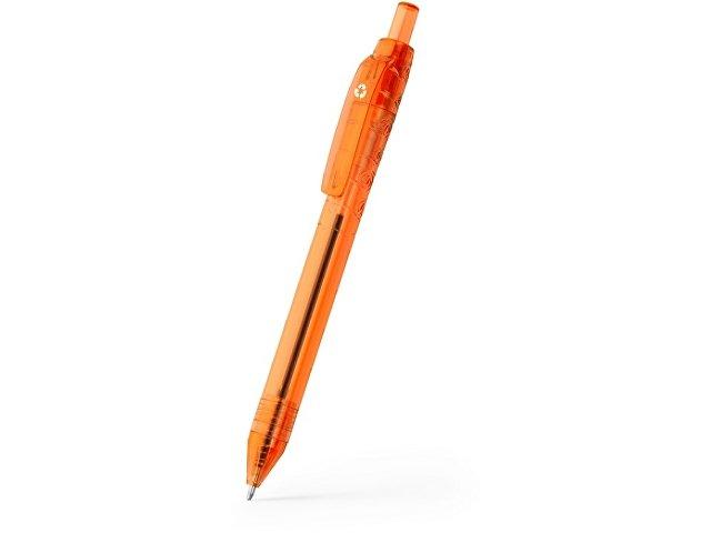 Полупрозрачная дизайнерская ручка из материала RPET. Кнопочный механизм. Синие чернила