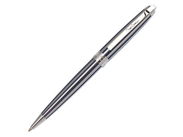 Ручка шариковая PROGRESS с поворотным механизмом и с оригинальной гравировкой в виде чередующихся полос синего лака и хрома по всему корпусу. Комплектуется одним синим стержнем.