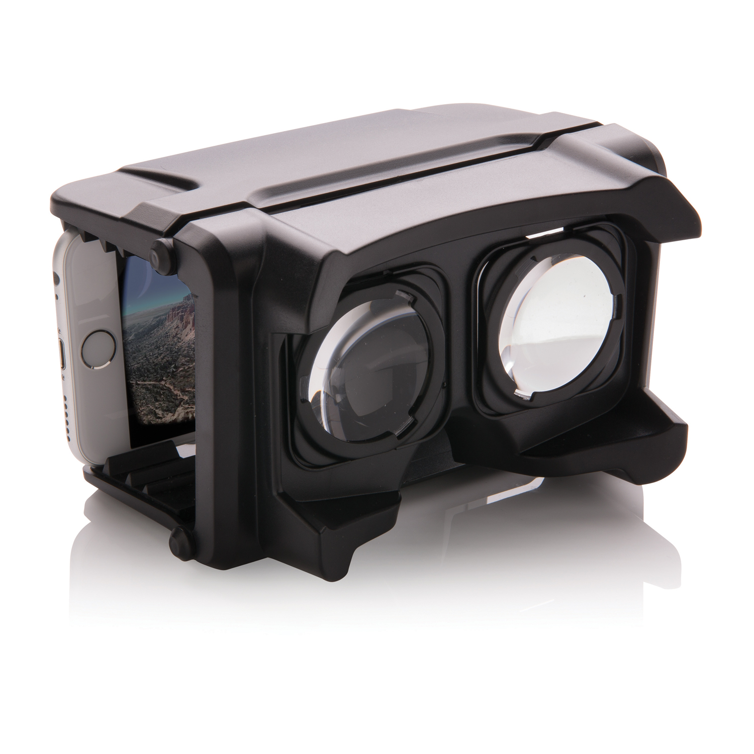 Складные очки Virtual reality, изготовленные из прочного ABS-пластика, позволят вам с легкостью поделиться радостью эффекта виртуального присутствия с друзьями и наслаждаться VR-видео, где бы вы ни были. Это возможно благодаря продуманной конструкции очков, которая при сложении делает их невероятно компактными. Закрепите свой смартфон между специальными мягкими панелями из легкого и упругого полимера EVA (этиленвинилацетат), они зафиксируют его в нужном положении. Благодаря продуманному дизайну вам не придется доставать телефон, чтобы переключиться на другой фильм или игру. Подходят для всех смартфонов диагональю до 6”.