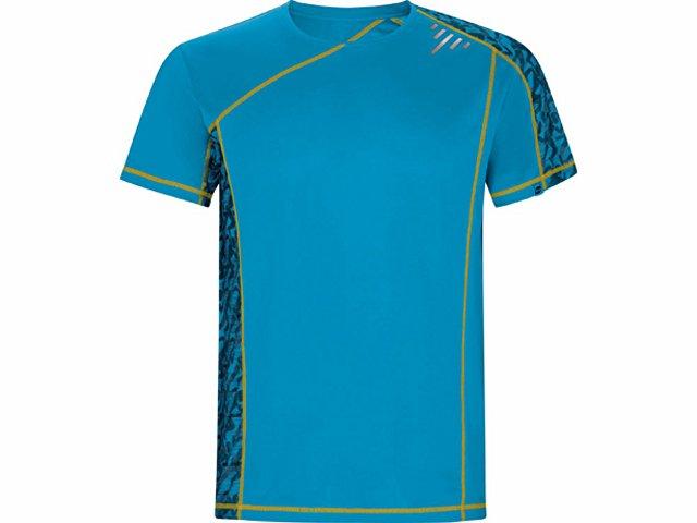 Спортивная футболка с коротким рукавом и принтованными вставками. Контрастные отстрочки плоским швом, светоотражающие элементы на полочке и спинке. Эко лейбл на рукаве.