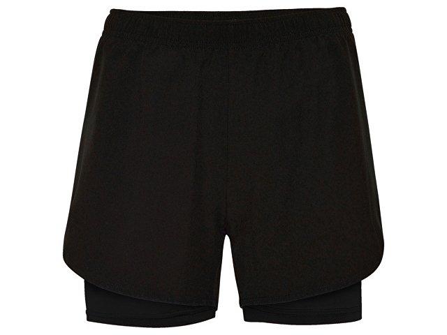 Женские спортивные шорты с контрастными внутренними короткими легинсами. Эластичный пояс с внутренним шнурком для регулировки. Светоотражающие детали. Специальная эластичная ткань для бега.