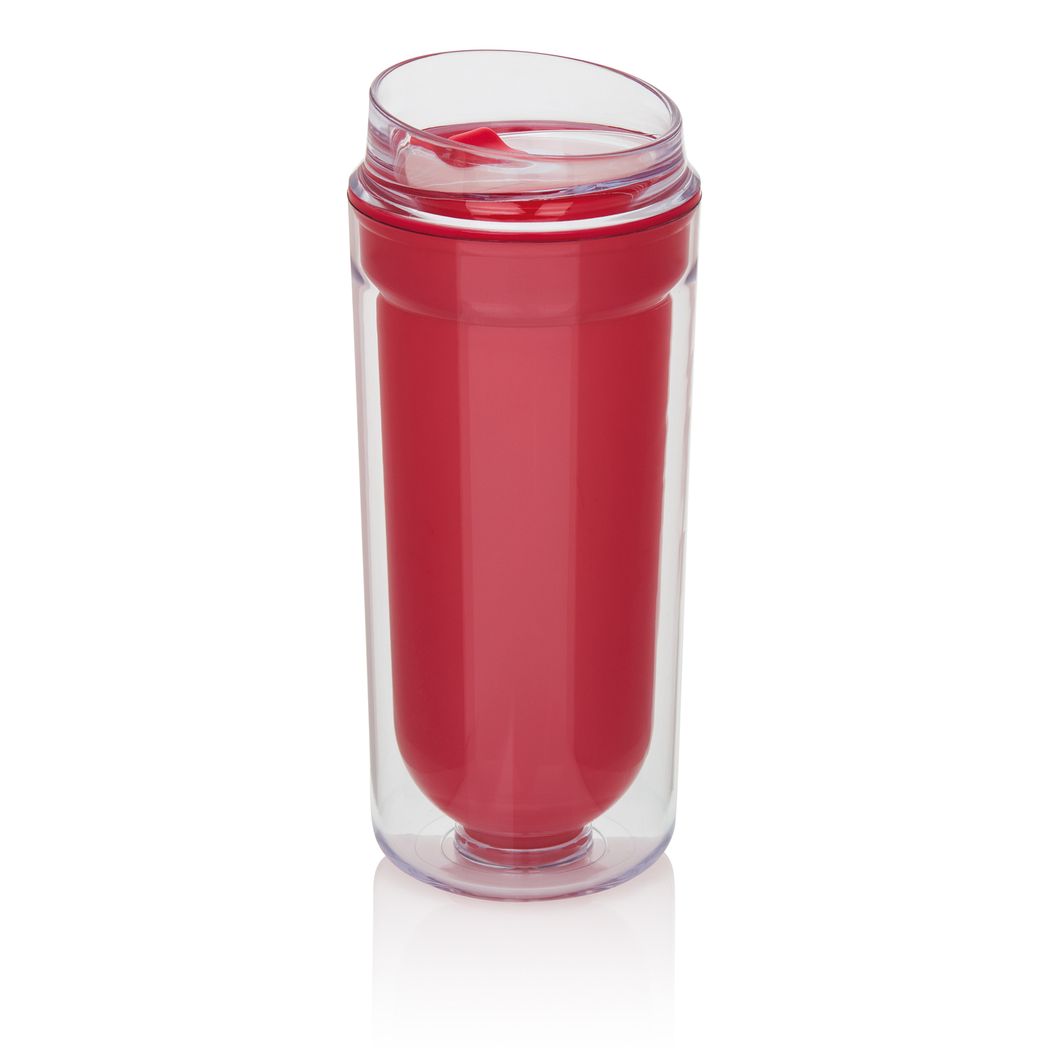 Термокружка с двойными стенками, изготовленная из прозрачного AS-пластика, удобна в использовании и практична. Объем термокружки 400 мл.