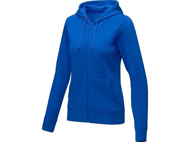Женская толстовка на молнии Theron. Основная этикетка, которую можно оторвать или отрезать, без неудобных пришитых ярлыков. Завязки на капюшоне. Расположенная по центру молния. Карман «кенгуру». С подшивкой из гладкого трикотажа в рубчик. С манжетами из гладкого трикотажа в рубчик. Внутренняя сторона покрыта ворсом. Тесьма из основного материала по внутренней стороне горловины. Придающие форму швы и зауженная талия для ровного прилегания. Трикотаж 50% Хлопок, 50% Полиэстер, 240 g/m2.