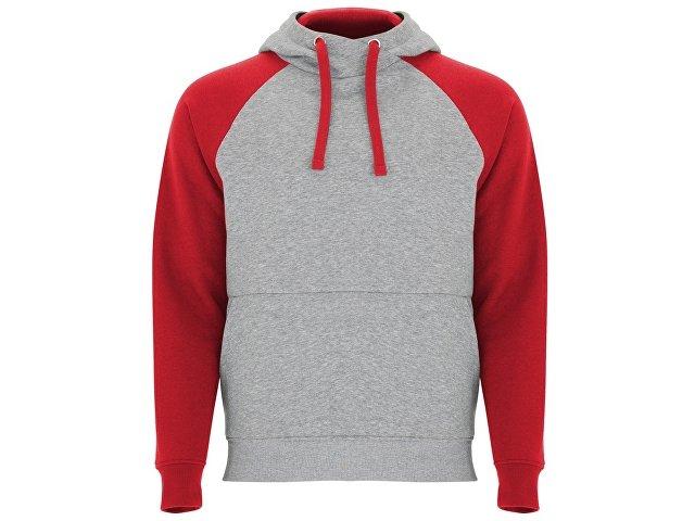 Худи с контрастным рукавом реглан. Капюшон с запахом, с контрастной подкладкой. На полочке карман кенгуру. Манжеты рукавов и низ изделия из риба 1х1.