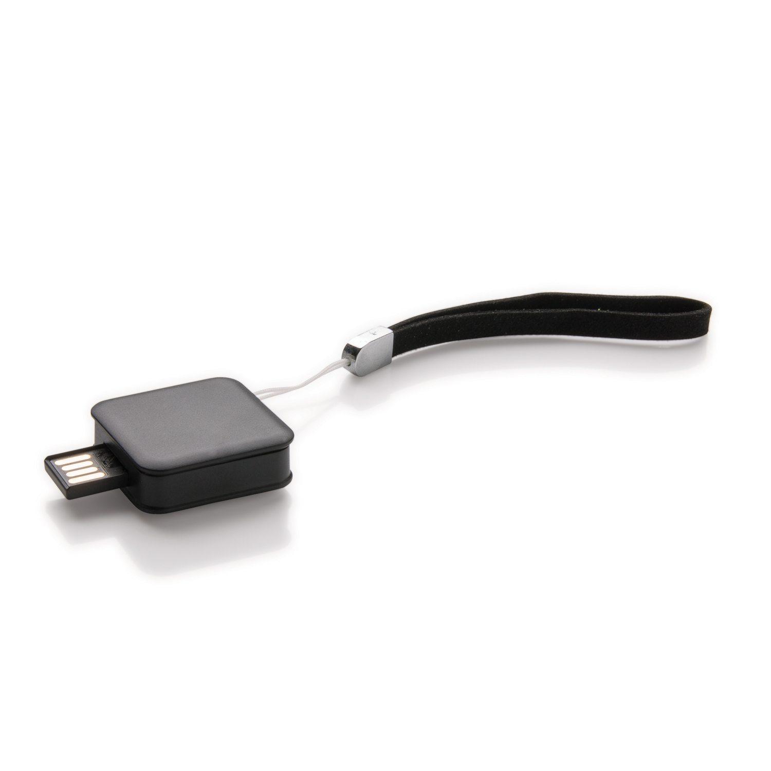 Квадратная USB-флешка объемом 8 ГБ стандарта USB 2.0. Уникальный механизм доступа к карте памяти: просто поверните верхнюю часть корпуса на 90 градусов. Полиуретановый шнурок в цвет корпуса.