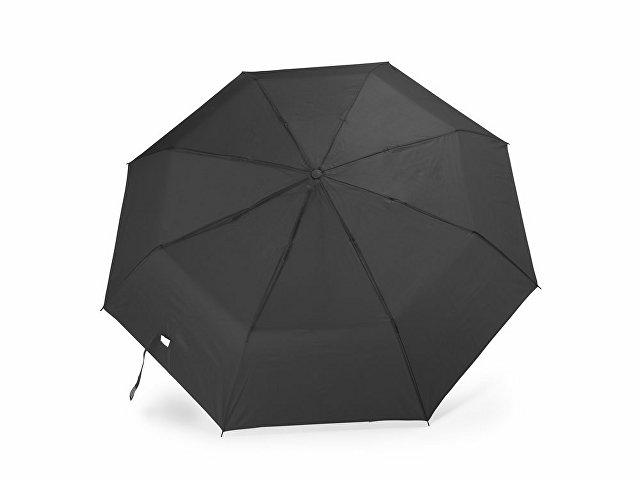 Механический складной зонт RPET с чехлом в тон. Стержень, спицы и наконечники черного цвета. Ручка из натурального дерева, соответствующая застежка-липучка. Диаметр 95 см.